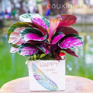 Cây Đuôi Công Tím (tên khoa học: Calathea medallion/Calathea makoyana) với vẻ ngoài nổ bật, thu hút đã trở thành loại cây để bàn, cây văn phòng được ưa chuộng nhất hiện nay. Cây biểu trưng cho sự thịnh vượng và may mắn cho gia chủ.